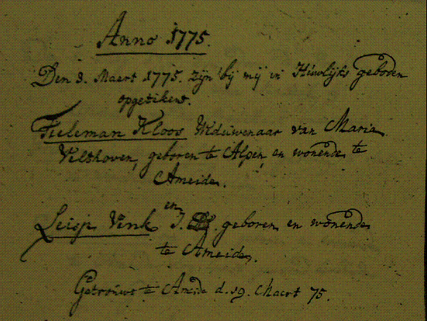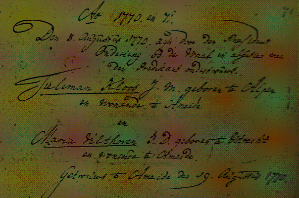 Klik op de foto voor vergroting Overl akte Tieleman Kloos (zoon van Pieter Kloos en Maria Herpst Trouwinschrijving Tiemelan Kloos en Maria v Velthoven Trouwinschrijving Tieleman Kloos en Lijsje Vink
